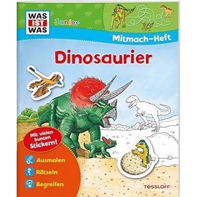 Unsere Welt sah vor vielen Millionen Jahren ganz anders aus: Die Kontinente nahmen einen anderen Platz auf der Erdkugel ein, das Klima unterschied sich stark vom heutigen. Damals lebten Dinosaurier, Flugsaurier und Meeresechsen. Die ersten Saurierarten entwickelten sich vor etwa 250 Millionen Jahren. Sie veränderten sich immer wieder, bis sie vor etwa 65 Millionen Jahren für immer verschwanden. Komm mit in die Zeit der Dinos, füttere die Giganten der Urzeit und gestalte deinen eigenen Flugsaurier! Löse das Dino-Sudoku mithilfe der Sticker! Und was verschlingt der Brachiosaurus so genüsslich? Neben einer lustigen Erstlesegeschichte bietet das Heft einen bunten Mix aus Spielen, Rätseln, Ausmalbildern und Stickern.Broschiert=24 Seiten. Verlag=Tessloff Verlag Ragnar Tessloff GmbH & Co. KG; Auflage: (c) 2016 Tessloff Verlag (1. August 2017). Sprache=Deutsch. ISBN-10=3788619945. ISBN-13=978-3788619947. Von Amazon.de empfohlenes Alter=Ab 4 Jahren. Vom Hersteller empfohlenes Alter=5 - 6 Jahre. Größe und/oder Gewicht=22,8 x 0,7 x 27,7 cm. Durchschnittliche Kundenbewertung=4.7 von 5 Sternen 48 Kundenrezensionen. Amazon Bestseller-RangDinosaurierTipps rund ums StudierenBeschäftigungsbücher=Nr. 3.302 in Bücher (Siehe Top 100 in Bücher) .zg_hrsr { margin: 0; padding: 0; list-style-type: none; } .zg_hrsr_item { margin: 0 0 0 10px; } .zg_hrsr_rank { display: inline-block; width: 80px; text-align: right; } Nr. 15 in Bücher > Kinderbücher > Tiere > Nr. 29 in Bücher > Business & Karriere > Job & Karriere > Aus- & Weiterbildung > Studium & Uni > Nr. 199 in Bücher > Kinderbücher > Spiel & Spaß >.